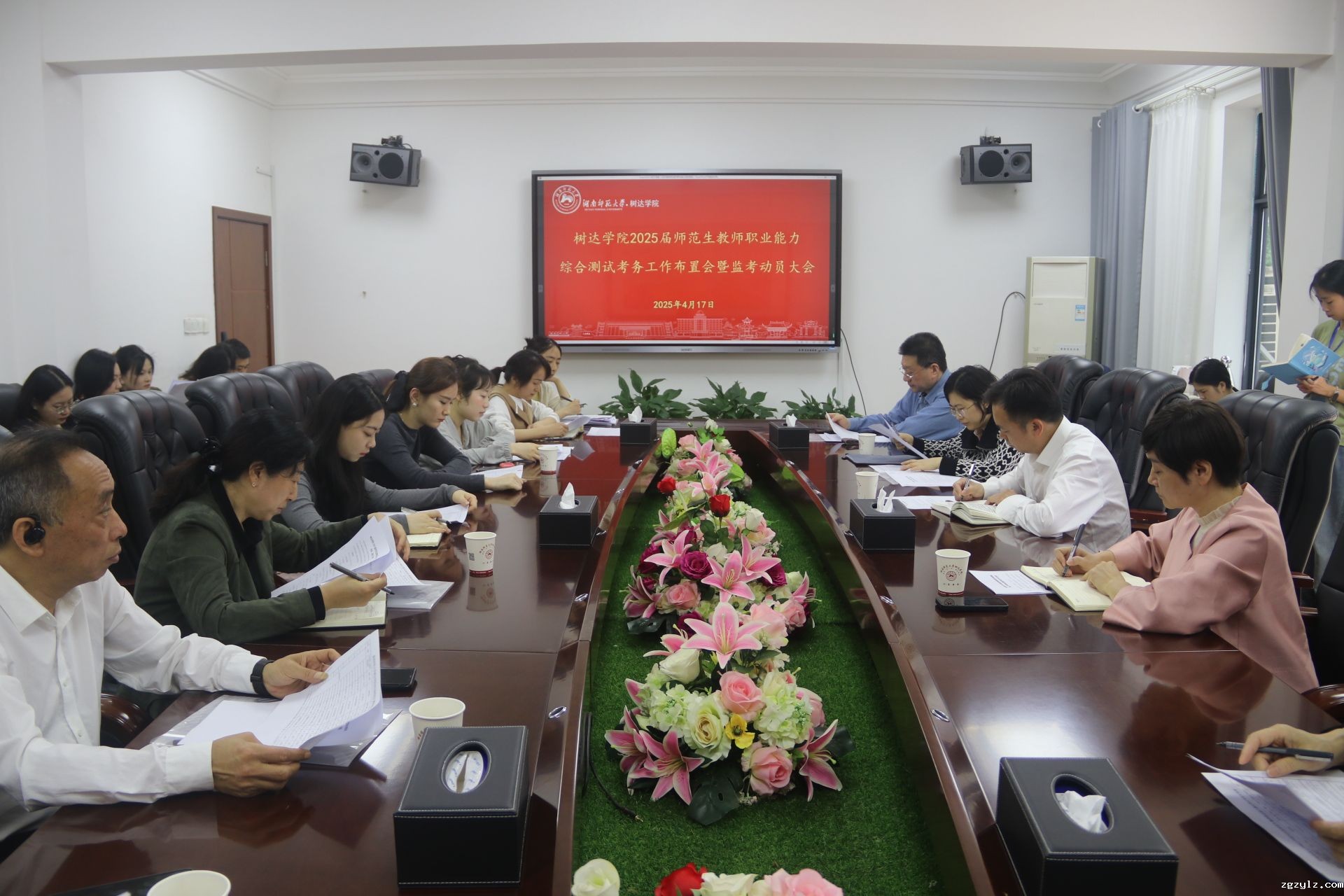 (记者 陈子英 向粒琪 胡穗源)4月17日上午,学院在办公楼302会议室召开2025届师范生教师职业综合能力测试考务工作会。省纪委监委驻湖南师范大学纪检监察组内设室主任李娟、院长向坚持出席会议。副院长梁蓓蓓主持会议。
